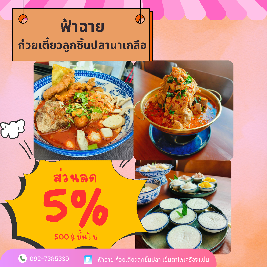 Facebook : ฟ้าฉาย ก๋วยเตี๋ยวลูกชิ้นปลา เย็นตาโฟเครื่องแน่น